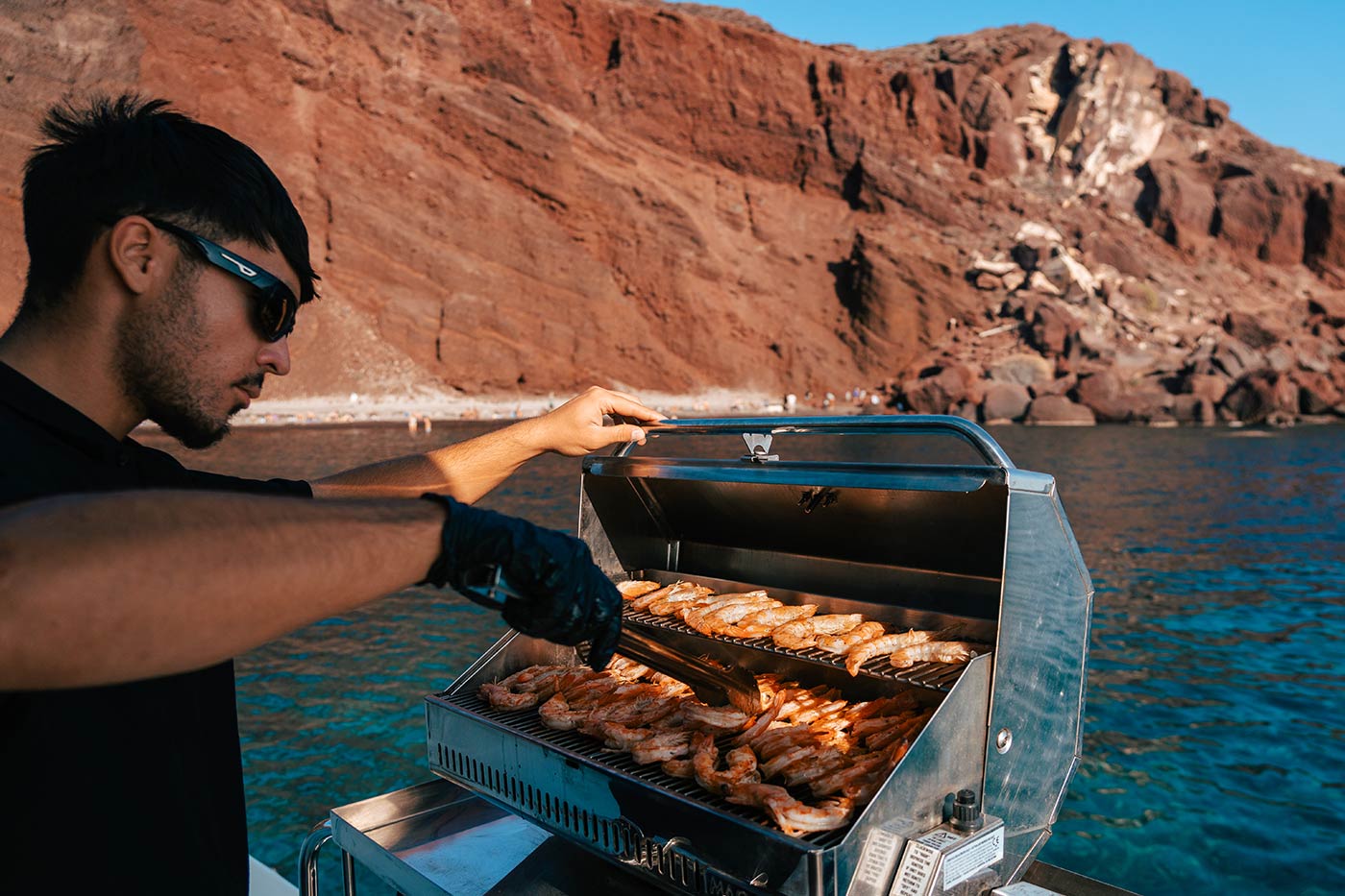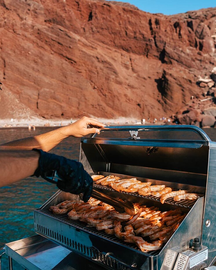 Yes! The cruise includes multiple swim stops at beautiful locations such as Red Beach, White Beach, the Volcano Hot Springs, and Thirasia Island. Whether you swim, snorkel, or relax with a drink on deck, it’s your cruise—your pace.
